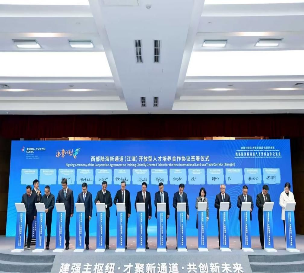 11月23日下午15:00,黄院长携物流系主任龚英、电商系副主任文悦、物流系专任教师吴琼、电商系专任教师士明军参加了在江津区行政中心举办的主活动——“2024西部陆海新通道人才开放合作交流会”。黄钟仪院长代表重庆工商大学与重庆大学、西南大学等高校共同签署了《西部陆海新通道(江津)开放型人才培养合作协议》,为枢纽港产业园吸纳培养高素质专业人才打下坚实基础。会上同步发布《西部陆海新通道部分重点城市人才需求目录》,精准对接248家单位755个岗位人才需求。这一指数的发布,将为通道沿线地区制定科学的人才政策、优化人才结构提供有力的数据支撑,进一步推动人才与产业深度融合。活动中,刘大响院士和蹇锡高院士分别就“筑就空中天路 让低空经济展翅高飞”和“科技创新 引领产业革命”发表主旨演讲。江津区与中国国际货运代理协会共同揭牌成立了西南地区首个国际多式联运人才培训中心,携手中国人事科学研究院共同发布《西部陆海新通道(江津)人才发展指数》,成立了西部陆海新通道重点城市人才发展联盟,并发布了《西部陆海新通道部分重点城市人才需求目录》。江津区还作了城市推介,并举行了西部陆海新通道(江津)高端外籍专家团队聘任仪式。