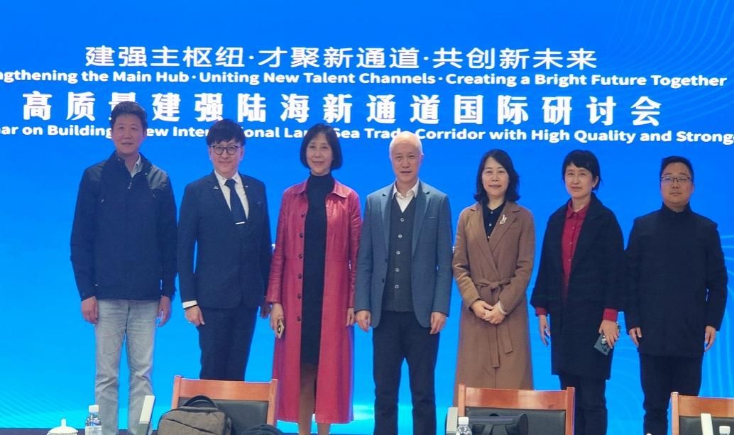 11月24日下午13:00,黄院长携物流系主任龚英、电商系主任唐国锋参加了在重庆枢纽港产业园(江津片区)举办的分活动——“高质量建强陆海新通道国际研讨会”,与来自世界各地的行业领袖和专家学者共同探讨了陆海新通道的发展。会议旨在搭建集人才招引、智慧碰撞、项目对接于一体的国际化、专业化、社会化交流合作平台,共同推动西部陆海新通道建设。会议由周建池区政府常务副区长主持,中国国际货运代理协会秘书长李志民先生发表了开题演讲。在主题发言环节,沈健利博士,作为国际货运代理协会联合会FIATA高级副主席,探讨了国际多式联运一单制如何推动陆海新通道降本增效。东盟货代协会联合会主席蔡胜华先生则讨论了国际行业协会驻渝联络处在发挥纽带作用方面的重要性。中国物流学会副会长王彦庆先生和原重庆市经信委驻欧洲联络处处长李淑秋女士分别就陆海新通道高质量发展赋能枢纽产业聚集和培养供应链复合型人才的重要性发表了演讲。会议还包括了嘉宾交流发言环节,以及区委副书记蒋华江的讲话,进一步强调了地方政府在推动陆海新通道建设中的作用和承诺。