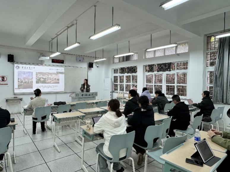 在专题分享环节,获奖团队三位代表依次分享了参赛经验,为课程提供了鲜活的实战案例与方法指导。刘瑞瑶同学以“书写‘一带一路’答卷,助力赛钢涅槃重生——塞尔维亚钢铁厂绿色转型之路”为例,深入解析了案例选题策略与命题优化技巧,展示了如何将时代议题有效融入工程管理案例构建,提升了同学们对选题方向与现实结合点的把握能力。张雪莹同学则聚焦于作品结构搭建与核心内容撰写,从逻辑结构、分析框架到文字表达,系统梳理了高质量竞赛作品的构建路径,增强了学生在案例写作过程中的条理性与表达力。胡欣同学围绕多媒体呈现,介绍了视频制作的流程与实用技术,并结合自身参赛作品的复盘经验,提出具体优化建议,拓展了课堂教学在成果呈现与表达形式上的应用空间。