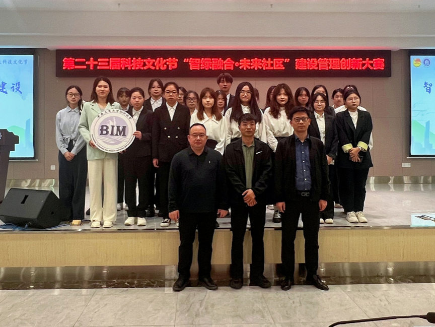 为深入学习宣传贯彻党的二十大精神,推动大学生将理论知识转化为实践能力,为未来社区建设提供创新方案,促进智慧社区与绿色低碳理念的融合,4月25日下午,由校团委主办,BIM协会、物流与供应链先锋协会承办的我校第二十三届“筑梦启航”大学生科技文化节之智绿融合·未来社区建设管理创新大赛在南岸校区学生发展中心b101报告厅举办。本次大赛邀请我校公共管理学院副院长王长征,工商管理系副系主任张煜,工程管理系讲师桂银香担任评委,近百余名同学来到现场观摩比赛。