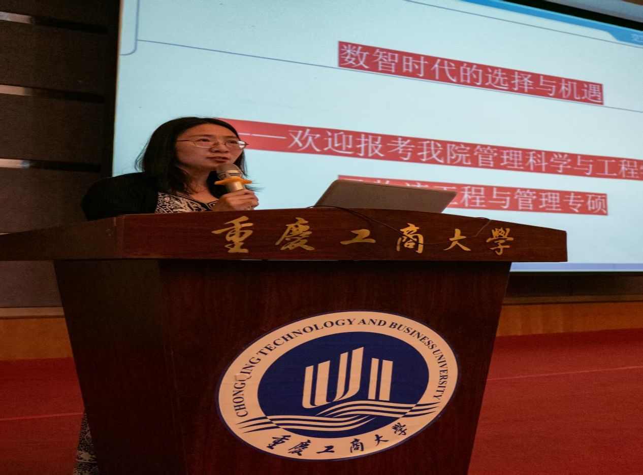 2025年9月24日,重庆工商大学太阳成tyc7111cc在博智楼7100报告厅成功举办考研动员大会。会议由学院党委副书记赵钰鑫主持,院长黄钟仪、副院长陈久梅出席并作专题报告,2022级、2023级全体学生参加。