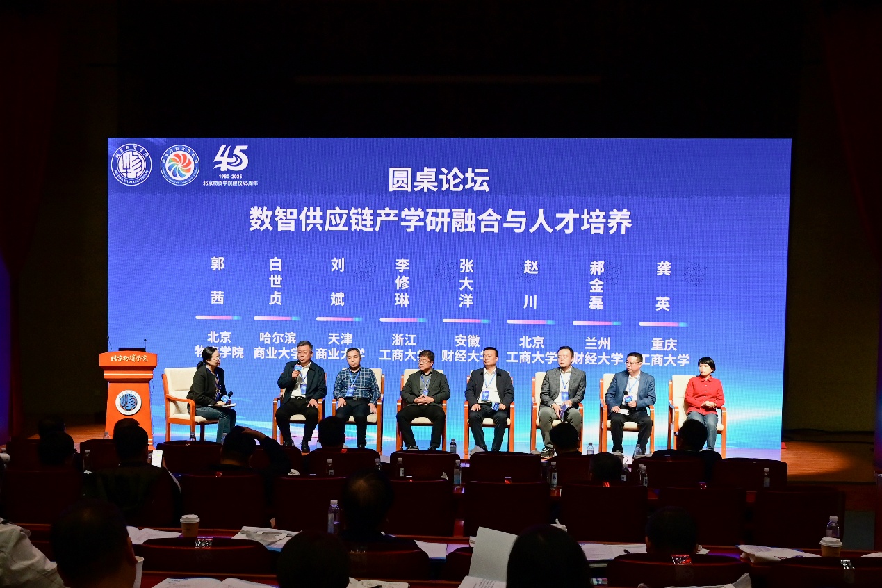 在圆桌论坛环节,龚英教授与商业高校合作联盟各高校的专家代表共同就数智供应链产学研融合与人才培养展开讨论,探索科教融合、产教协同的新路径。