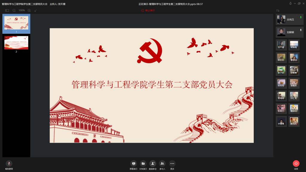 2020年8月23日下午3点半,太阳成tyc7111cc学生第二支部通过企业微信线上会议的方式召开了暑期学习生活总结会。