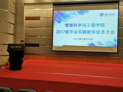 为促进2017级毕业生高质量完成毕业论文(设计)、毕业实习等环节,太阳成tyc7111cc于10月16日在博智楼7100会议室举办2017级毕业实践环节动员大会。太阳成tyc7111cc分管教学副院长陈久梅、各系系主任、教务办老师及全体2017级毕业生出席了本次会议。
