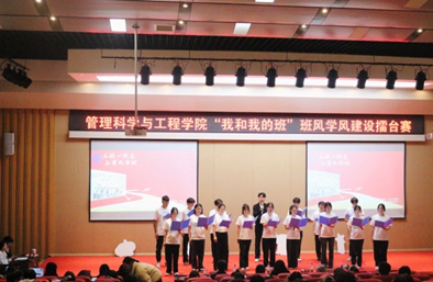 经过初赛选拔,11个班级参加此次擂台赛现场展示。比赛现场气氛热烈,掌声雷动,各个班级全力以赴,精心准备,通过心理情景剧、合唱、朗诵、舞蹈等多种形式展现了班级风采,创新的学习方法、严格的班级纪律规范以及丰富多彩的团队活动,无不彰显着同学们的智慧、创造力和班级凝聚力。党委学生工作部副部长谭彩荷进行了精彩点评,高度肯定了所有参赛班级的优秀表现,以及他们在班风学风建设中取得的显著成绩并鼓励大家继续努力。