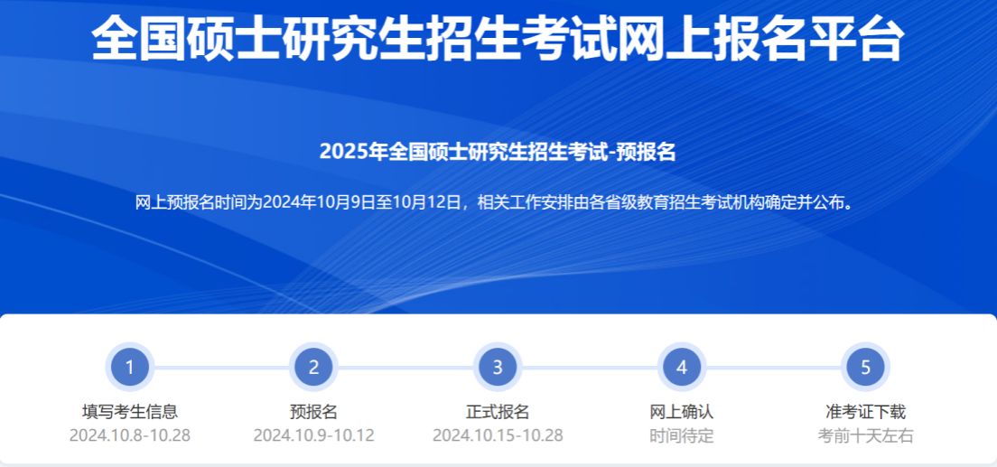 2. 网上报名时间为2024年10月15日至10月28日(网上预报名时间为2024年10月9日至10月12日,网上预报名和正式报名效力相同),每天9:00-22:00。应届毕业生除了可在预报名阶段报名外,也可在正式报名阶段报名。